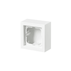 2046746 Pintakehys, Impressivo, kulmaan asennettava, 85mm peitelevylle, matta valkoinen Kulmaan asennettava pinta-asennuskotelo Impressivo uppoasennus tuotteille. Ei sovellu kaksoispistorasioille. Käyttö 85 mm peitelevyn kanssa.