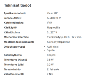 Kiertoliiketoimilaite, 2 Nm, AC/DC 24 V, Auki/kiinni, 3-piste, 75 s, IP54, kierto myötäpäivään