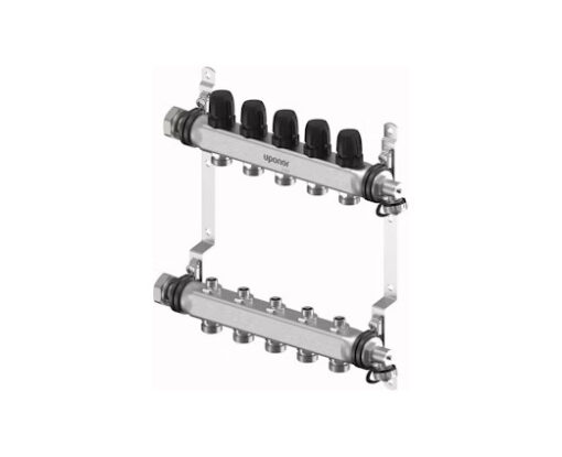 Ruostumattomasta teräksestä valmistettu esikasattu jakotukki, joka ei sisällä virtausmittaria. Jakotukkia on saatavana 2-12 lähtöisenä ja se voidaan halutessa asentaa Uponor Vario -jakotukkikaappiin.