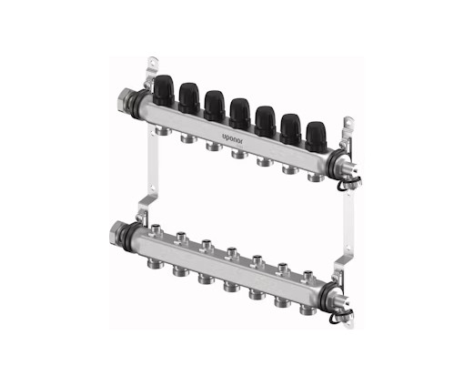 Ruostumattomasta teräksestä valmistettu esikasattu jakotukki, joka ei sisällä virtausmittaria. Jakotukkia on saatavana 2-12 lähtöisenä ja se voidaan halutessa asentaa Uponor Vario -jakotukkikaappiin.