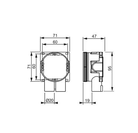 AU5.2 kojerasiassa on 2 kpl kiintonysiä Ø 20-putkelle. Rasian muilla sivuilla on yhteensä kolme irtonysäaihiota ja pohjaan voidaan liittää kaksi pohjanysää. Valmistettu halogeenittomasta materiaalista (IEC/61249-2-21). Kojerasioiden kansi tehdään kotitalouksista kerätyistä kuluttajamuovipakkauksista.
