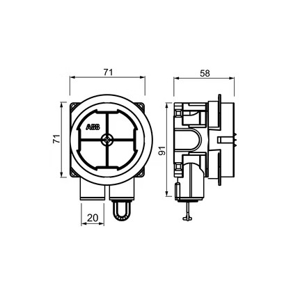 Kojerasiassa on kaksi valmiiksi avattua kiintonysää; toinen on tulpattu irtotulpalla, ja toinen on avonainen (molemmat varustettu pienennysnysällä Ø 20/16 mm). Lisäksi neljä avattavaa aihiota sivuilla ja kaksi pohjassa. Ruuvien etäisyys c/c 60 mm.