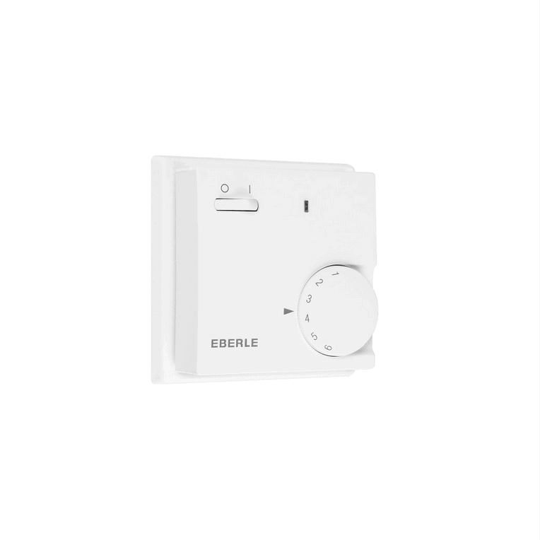 Eberle 52531-E on tyylikäs elektroninen termostaatti joka on suunniteltu erityisesti lattialämmityksen ohjaukseen. Termostaatissa on mekaaninen rajoitin jolla voidaan rajata lämpötilan säätöpyörän säätöaluetta. Termostaatissa on erillinen virtakytkin sekä punainen LED-merkkivalo joka kertoo lämmityksen olevan käynnissä.
