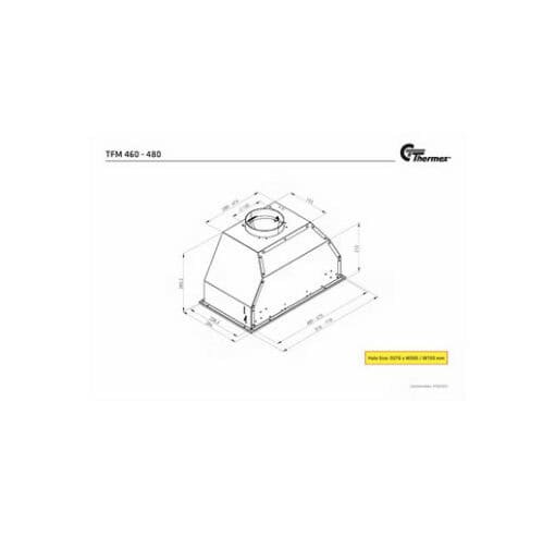 Ruostumattomasta teräksestä valmistettu Thermex TFM 460 moottorilla on minimalistinen sisäänrakennettu liesituuletin, joka piilotetaan yläkaappiin. Sisäänrakennettu kytkinpaneeli helpottaa liesituulettimen käyttöä. Moottori on energiatehokas Eco-moottori, joka takaa alhaisen melutason.