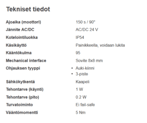 Kiertoliiketoimilaite, 5 Nm, AC/DC 24 V, Auki/kiinni, 3-piste, 150 s, Sovite 8×8 mm, IP54