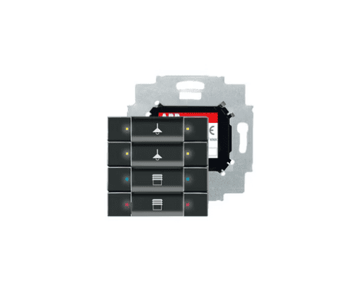 4-osainen painike, joka lähettää sähkeen väylälle, LED-idikointi. KNX-väyläliityntäyksikkö sisällyy toimitukseen. Peitelevy ei sisälly toimitukseen.