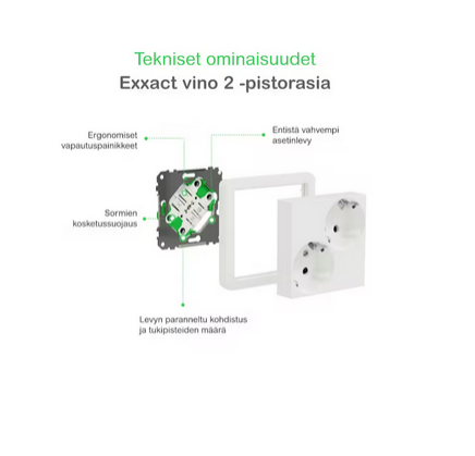 Uudistettu Exxact vino 2-pistorasia on suunniteltu yhteistyössä asiakkaiden kanssa. Pistorasian toimintaa ja rakennetta on paranneltu lukuisilla eri tavoilla. Uusi tuote on sekä turvallisempi että kestävämpi.