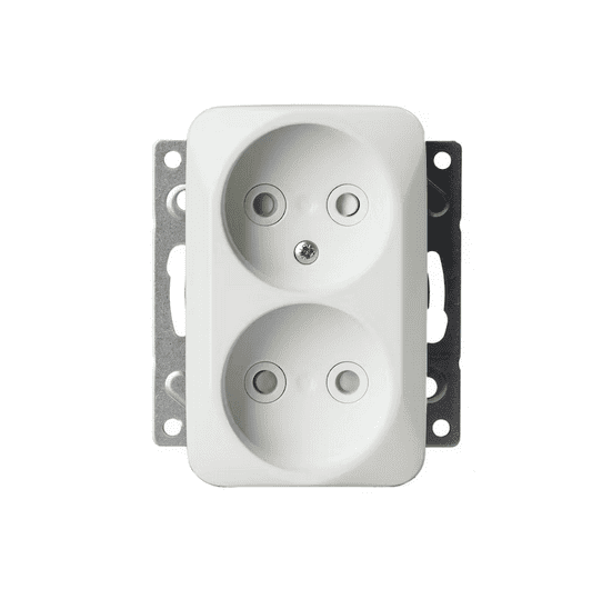 2506181 PISTORASIA JUSSI 2N/16A/IP20 UKJ HL VAL16A/250V. 2-osainen 0-luokan pistorasia keskiölevyllä. Pistorasiassa on liittimet 0- ja N-johtimille ja niihin voi kytkeä max 4 johtoa (haaroitusmahdollisuus). Ei lisäliittimiä. Liittimet on hyväksytty ML ja MK johtimille. Pistorasian runko on kosketussuojainen ilman peitelevyä. Pistorasiaan voi lisätä kynnet työmaalla. Asennus vain kuiviin tiloihin sisälle (IP20).