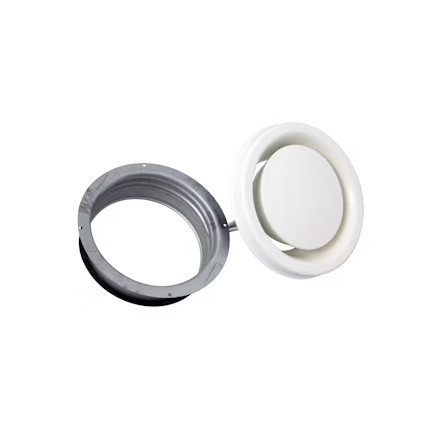 Valkoinen metallinen poistoilmaventtiili alumiinikehyksellä.