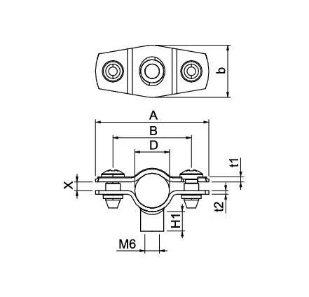 Kaapeli- ja putkikiinnike M6 kiinnityksellä. Teräsrakenne joka on galvanoitu DIN EN 12329 mukaan. Matala asennuskorkeus mahdollistaa asennuksen ahtaisiin tiloihin, joissa kulkee paljon muuta tekniikkaa.