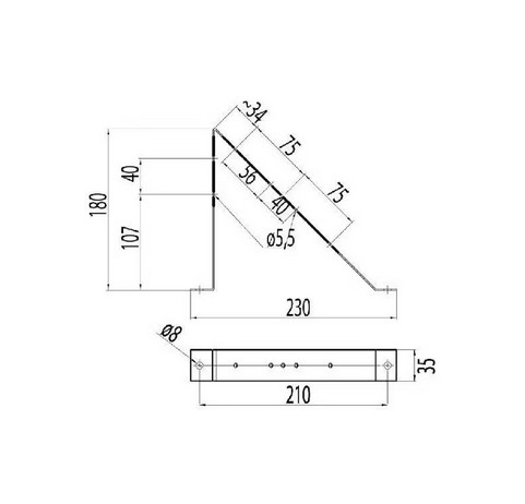 Ensto Seinäkiinnike Alppilux SK1 45/90AST 4265357 Valaisimille tarkoitetun seinäkiinnikkeen pituus on 210 mm, leveys 180 mm ja korkeus 30 mm.
