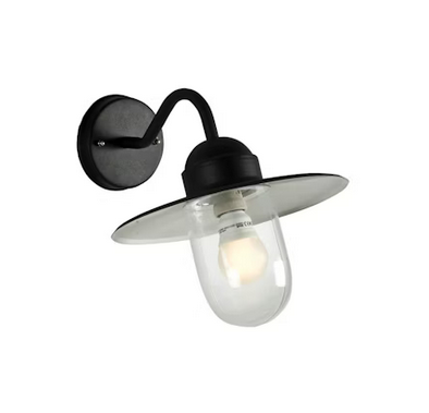 Arvika Seinävalaisin ulko IP44; SL I; LED vaihdettava; Päättyvä; 3×2.5mm²; Kotelo Teräs; Väri mus; Suojus Läpinäkyvä lasi
