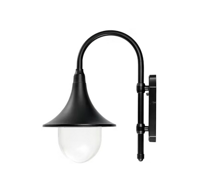Kartano Trumpet Seinävalaisin ulko Ei him; IP44; SL I; LED vaihdettava; Päättyvä; 3×2.5mm²; Kotelo al; Väri mus; Suojus Läpinäkyvä muovi