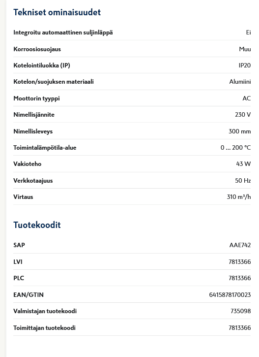 Sopii tulisijaan, jonka vapaan aukon pitnta-ala on enintään 0,35 m2. Hormin aukon koko voi olla pienimmillään 123×123 mm ja suurimmillaan 160×160 mm. Siirrettävän kaasun sallittu lämpötila alle 200 °C.