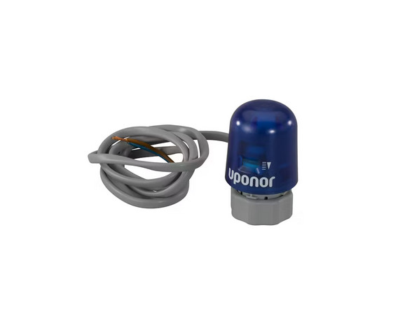 Uponor Vario B -jakotukkiin (WGF) sopiva toimilaite. 24 V NC (jännitteettömänä kiinni), 3 W, IP54. Asennetaan menojakotukkiin. Kierre M28.